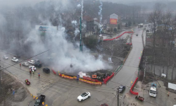 2024年5月24日上午,S327工地第一次爆破準備中,已完成現場人員清場 警戒線設置,安全值守人員全部到位。